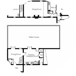 Entrance hall, dining room, cloakroom, large kitchen/breakfast room with AGA, oven and dishwasher. French windows from dining room and kitchen open on to private walled garden. Washing machine and tumble dryer.